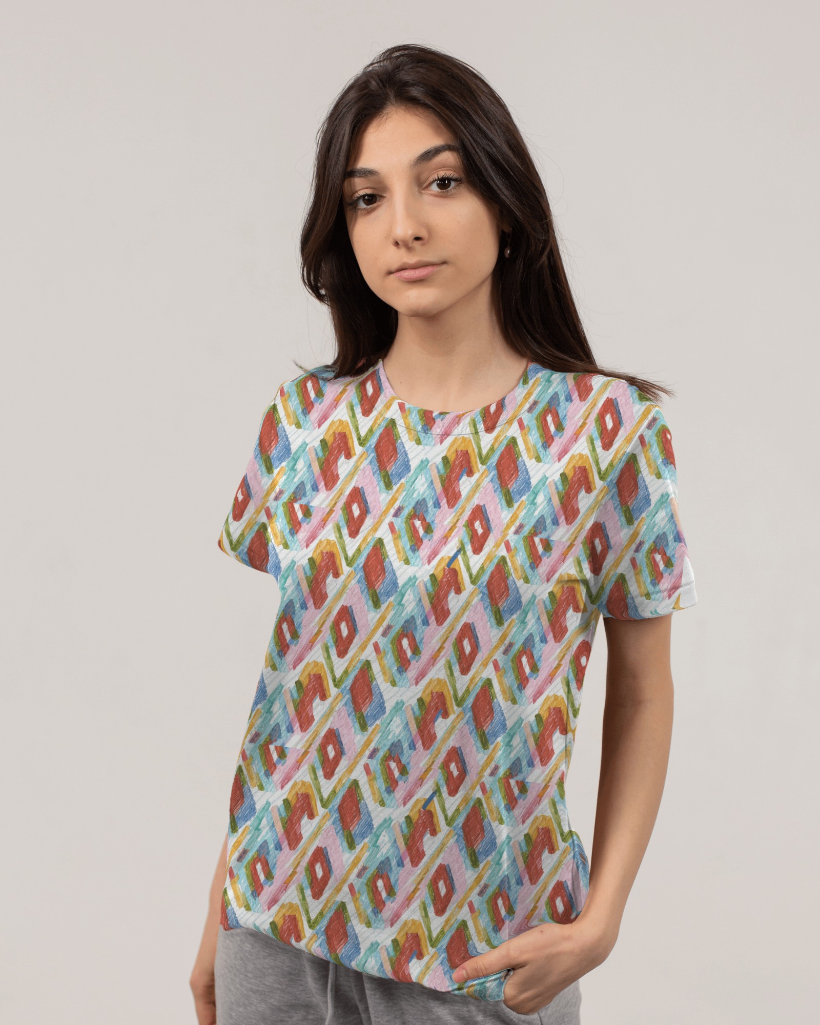 Women Regular Fit Multicolor Art Print T-Shirt