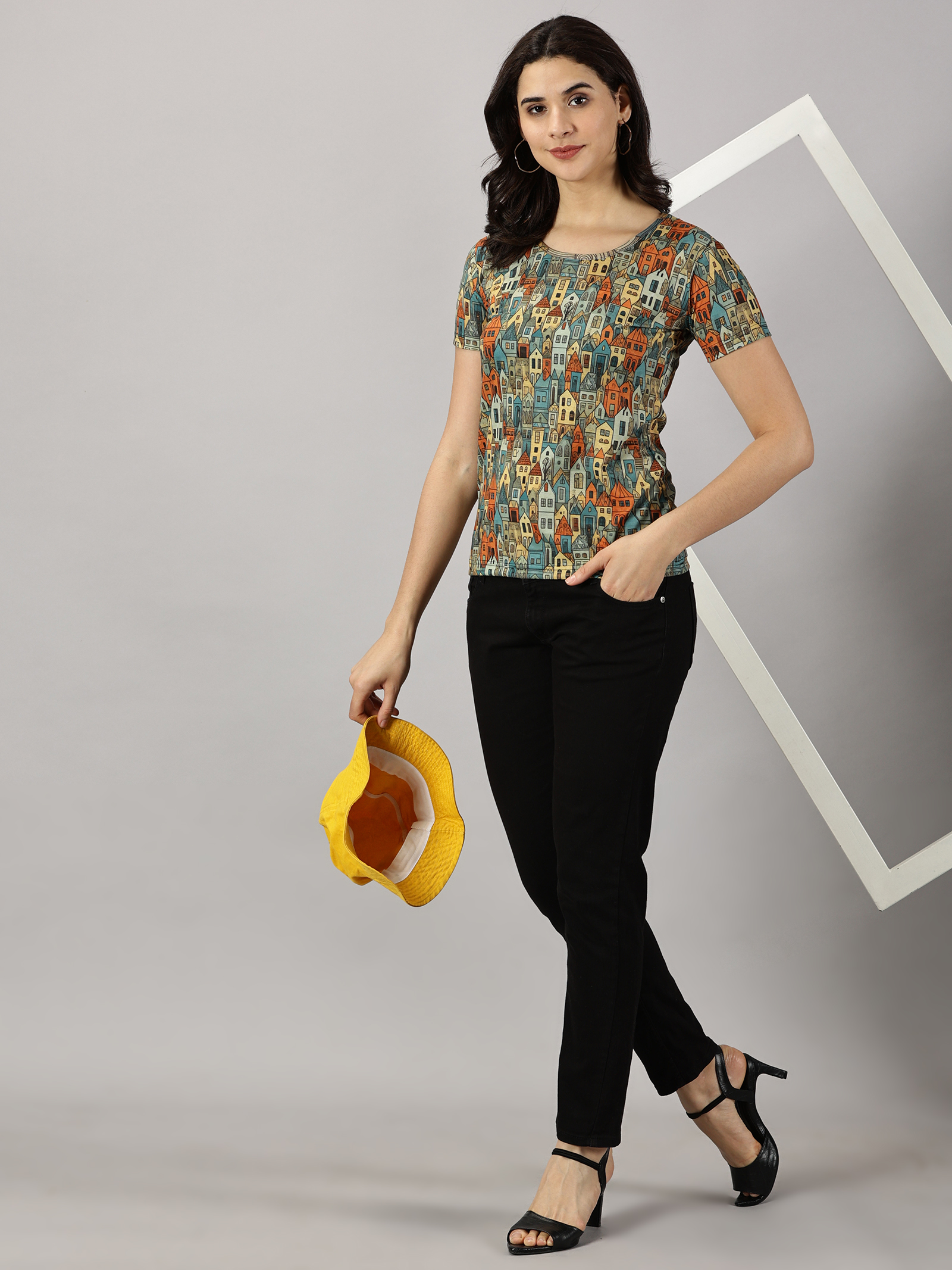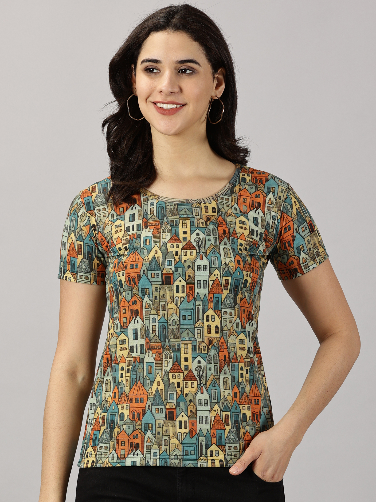 Women Regular Fit Multicolor Art Print T-Shirt